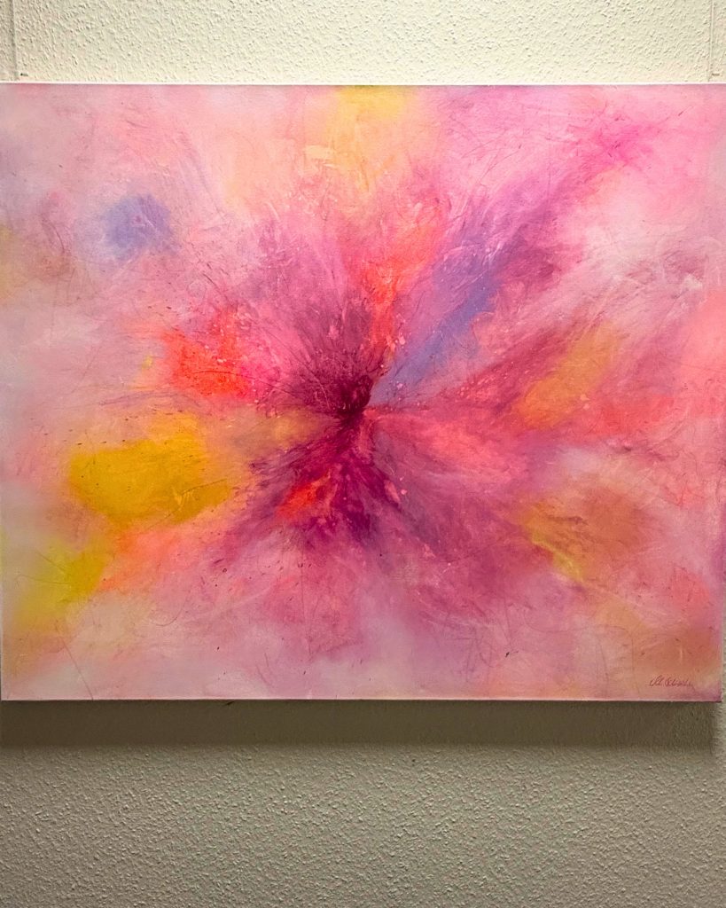 Hallo Miriam, Deine Bilder strahlen durch kräftige Farben und wechseln zwischen abstrakten Explosionen bis hin zu zarten Wellen oder auch gegenständlichen Blumen. Wo bekommst Du Deine Inspiration dafür her?